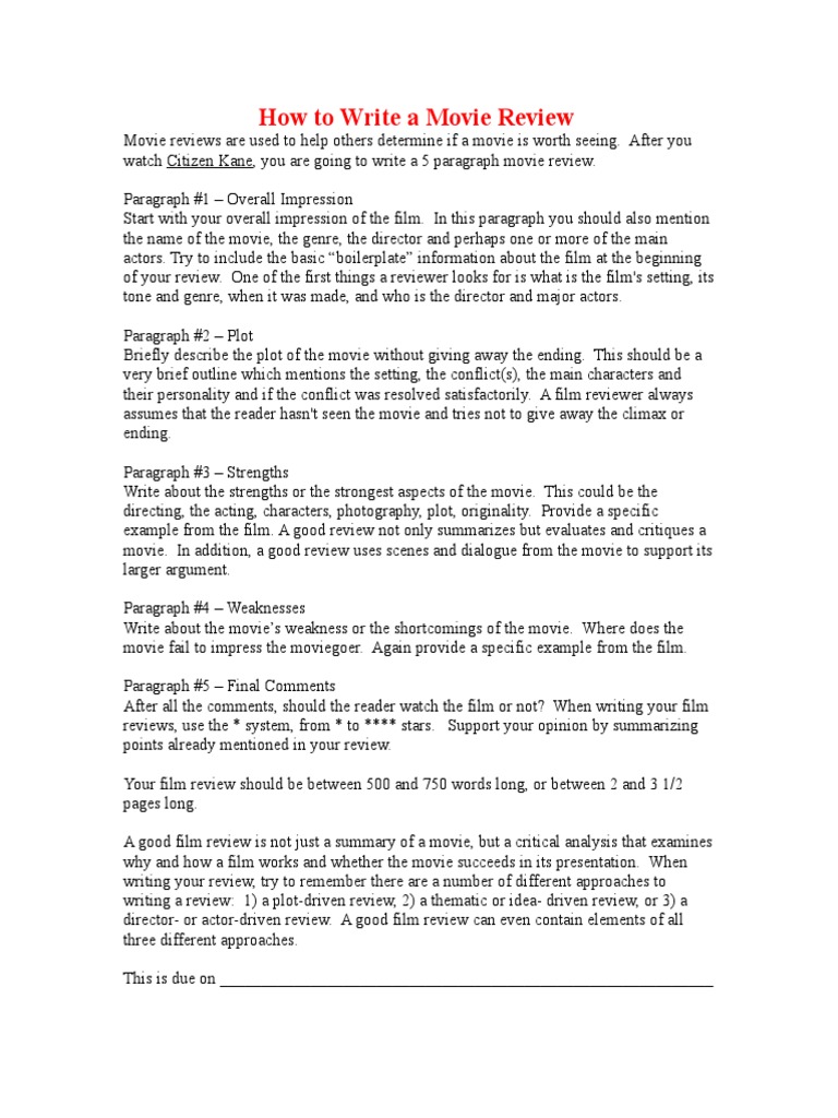 How To Write A Movie Review Format : Jan 08, 2019 · as a reviewer, you must explain what happened in the film and express your opinion about the success or failure of the film maker’s creation.
